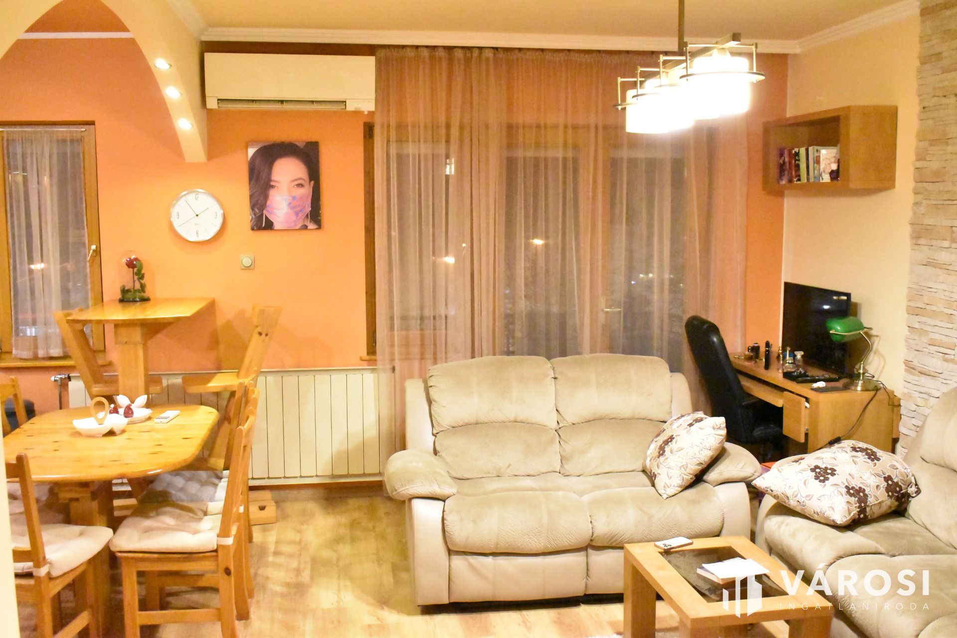 Eladó Gyula központi városrészen, a Kossuth téren egyedi panoráma kilátással rendelkező, szépen felújított 3 szobás, amerikai konyhás tégla lakás. Az ingatlant 2017 évben újították fel, mely során a konyha, fürdőszoba, közlekedő, Wc helységek szép hidegburkolatot kaptak, továbbá a nyílászárók is cserélve lettek új fa, hőszigetelt nyílászárókra. A lakás elektromos vezetékei is cserélve lettek (3 fázisra lett bővítve a hálózat, illetve „H” tarifa is van). A lakás fűtéséről egy modern Viessmann gázkazán és lapradiátorok, valamint egy inverteres (hűtő-fűtő) klímaberendezés gondoskodnak. Az ingatlan elektromos fűtése igen hatékony a „H” tarifás áramnak és a nagy teljesítményű klímának köszönhetően. Az ingatlan egyedi átalakításának köszönhetően a nappali és a konyha rész egy légtérben található, ahol egy nagyon szép, minőségi gépekkel ellátott konyhaszekrény található. A felújítás során több kényelmi eszköz is be lett építve, mint pl. elektromos redőnyök és költséghatékony led világítások. A lakás elosztása hibátlan, mivel az összes helysége a közlekedőről külön-külön megközelíthető. A lakáshoz tartozik egy felújított erkély is, amely csodálatos panorámával rendelkezik a város központjára. Az ingatlanhoz tartozik egy közös tárolóhelység. A lakás ára tartalmazza a teljes, minőségi bútorzatot és a beépített műszaki tárgyakat (MILE mosógép, mosogatógép, hűtőszekrény, bőr-dönthető ülőgarnitúra stb.)