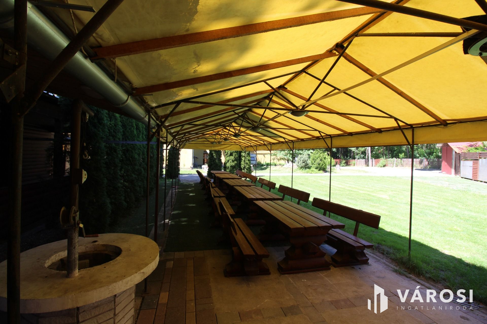 - Fedett kiülős rész, kinti bárral, bográcsozási és sütögetési lehetőséggel