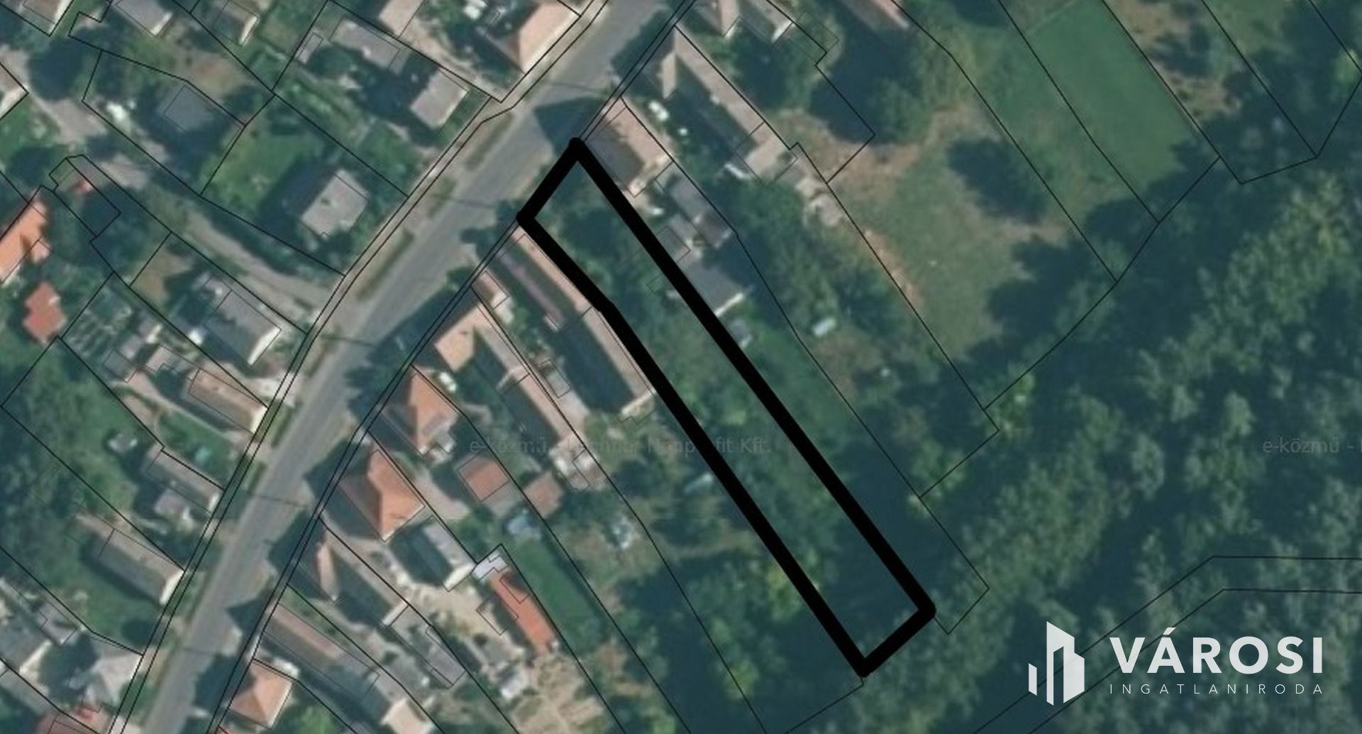A telek téglalap alakú és az utcafronti résztől az ártéri erdőterület határáig tart.