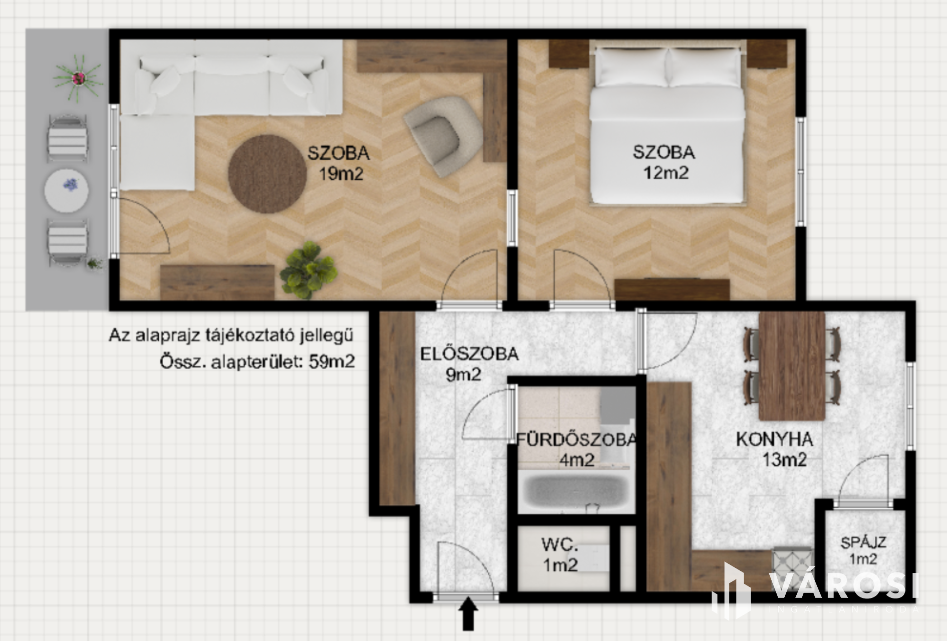 • 59 m² + erkély