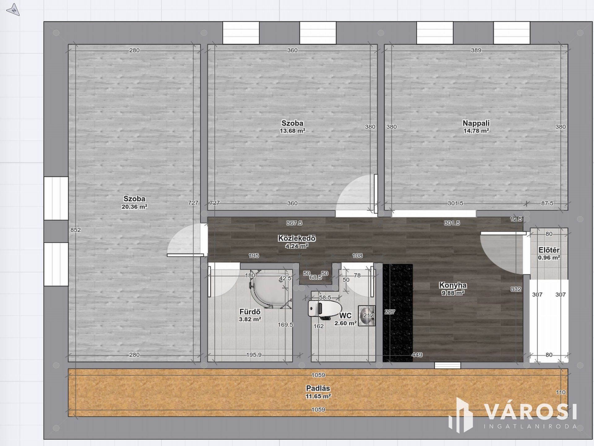 - 69, 4 nm alapterületű, tetőtéri elhelyezkedésű