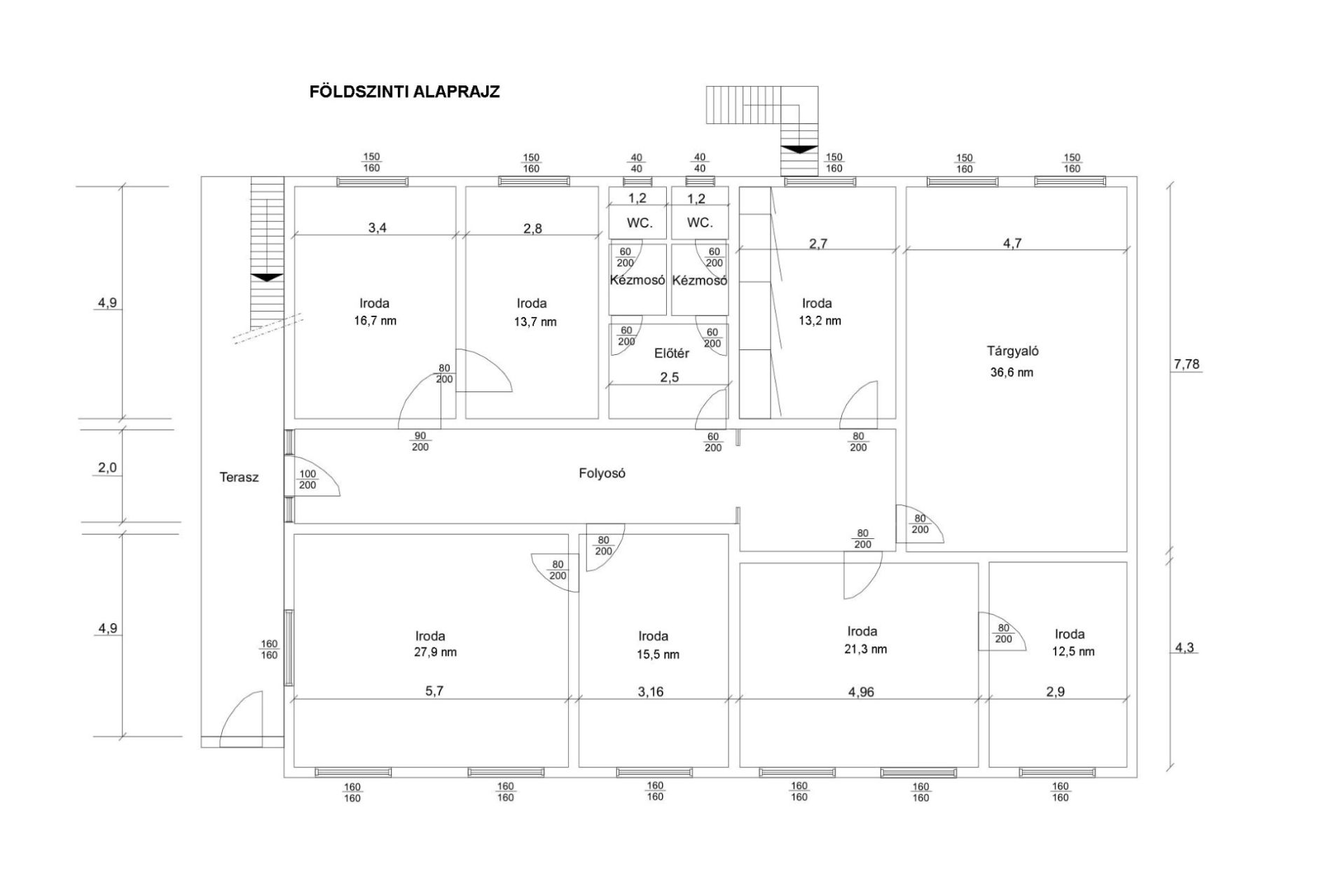 - Földszint: 7 db irodahelyiség, tárgyaló, mosdók - tökéletesek ügyfélfogadásra, üzleti célokra. (200 nm)