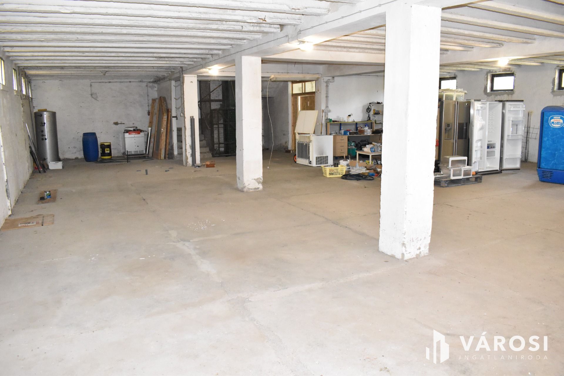 The building on the property was constructed in the 1960s, is structurally impeccable, with brick walls and a reinforced concrete frame. The building previously operated as a grain storage and drying facility. Thanks to its owner, continuous improvements have been made in recent years, including replacement of the water pipes, the entire electrical network, and the installation of 'industrial electricity' (3x50A), which currently operates at residential rates. It is suitable for the installation of a solar panel system. The main building’s roof has been renovated, and mains drinking water has been connected. On the ground floor, a cozy studio apartment (with kitchen, bathroom, and toilet) has been created. Heating is provided by wood-burning, air conditioning with heating/cooling function, and other electric heating options. Spaces for a washing machine, dishwasher, extractor fan, refrigerator, TV, and audio equipment have been set up; hot water is provided by an electric boiler. For goods loading, a large gate has been structurally prepared, with supporting pillars and a lintel. Additionally, foundations and sewage piping have been prepared for a few ‘wet’ rooms.