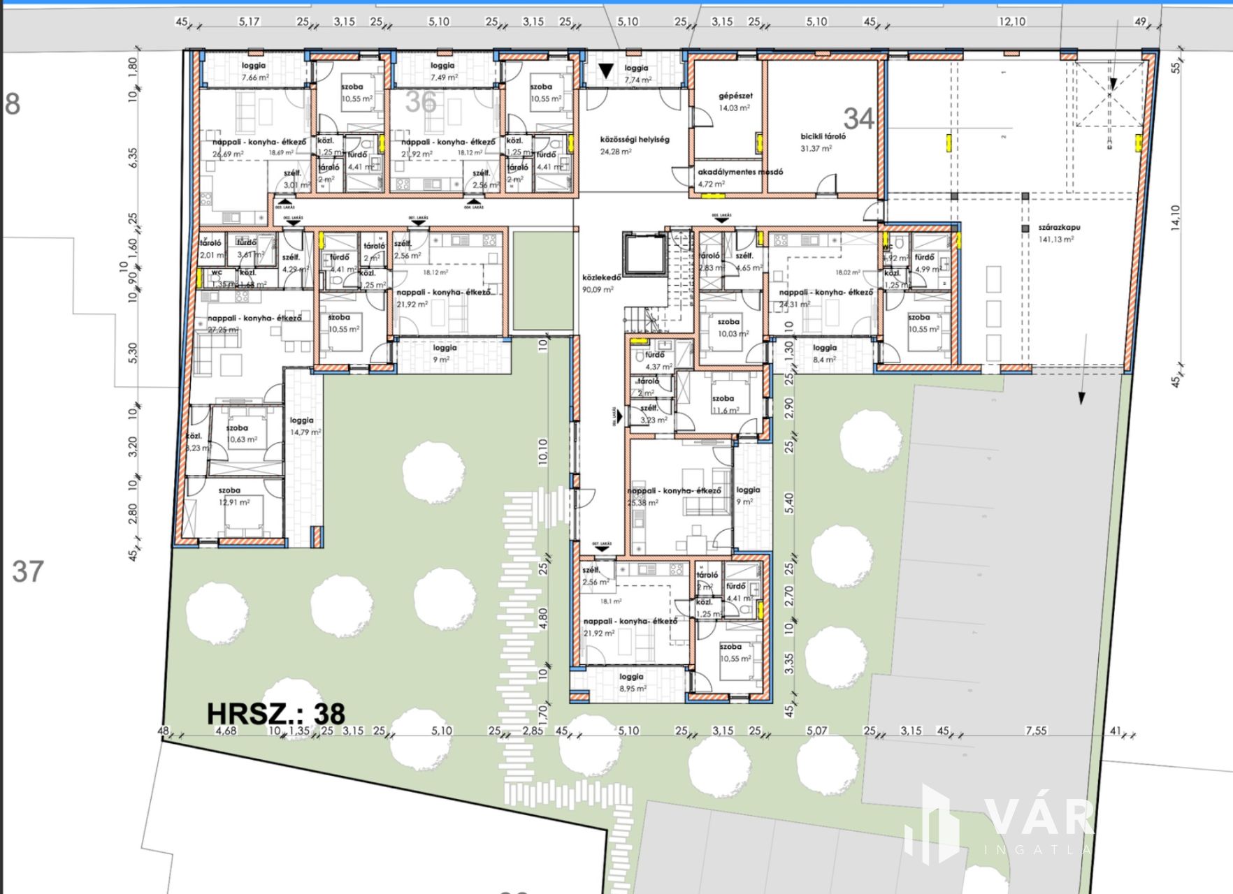 Makón, presztizs lokációval rendelkező - Makói fürdőtől 30 méterre - a Szent János téren, Eladó egy most induló, tégla építésű, FÖLDSZINTI, 55,57 nm-es élettérrel rendelkező, amerikai konyha nappali plusz egy szobás loggiás lakás (003.lakás), liftes társasházban.