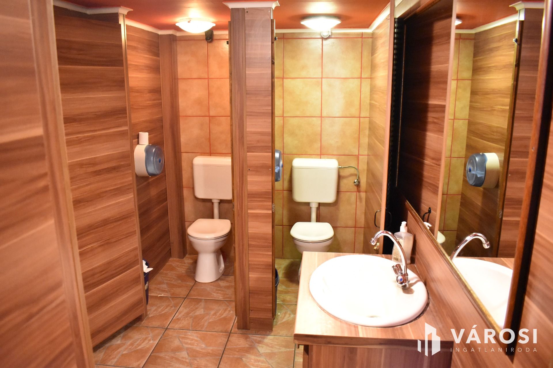 Az ingatlan földszinti részén lett kialakítva egy hangulatos és minden igényt kielégítő bárpult, egy éttermi vendéglátó rész, amely a kialakított szintén hangulatos galéria résszel közel 200 fő befogadásra alkalmas. A galéria rész ebből 104 fő befogadásra alkalmas, ahol a kialakításának köszönhetően zártkörű rendezvények lebonyolítására is tökéletesen alkalmas. A vendéglátó részen a közelmúltban lettek felújítva a vizesblokk (mosdó, WC) helységek is, amelyből 3 db. található az éttermi részen (férfi, női és mozgáskorlátozott). A vendéglátó egységhez tartozik egy hatalmas és modern eszközökkel felszerelt konyha, amely több részből áll, itt lett kialakítva egy pizza készítő, melegkonyha, előkészítő, mosogató, illetve több hűtő, raktár és mosdó helység is. A fűtésről 3 db gázkazán lapradiátorokkal, padlófűtéssel, a hűtésről klímaberendezések gondoskodnak. A vendéglátó részen az elektromos hálózat is korszerű, itt 3 x 72 A és ipari áram található.