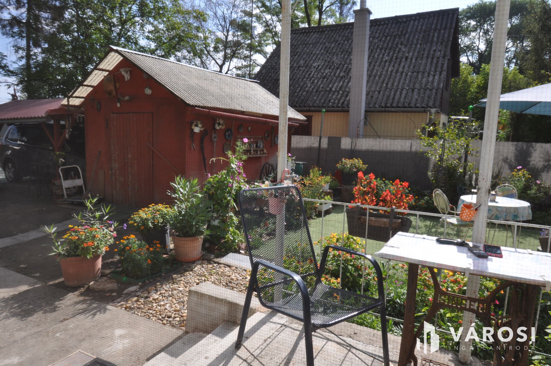 Emellett az ingatlanon található egy 12 m2 nagyságú szerszámos kamra, és egy hozzá épített kocsibeálló is, hogy az esetleges zord időjárás esetén is védett helyen legyen minden értékünk.