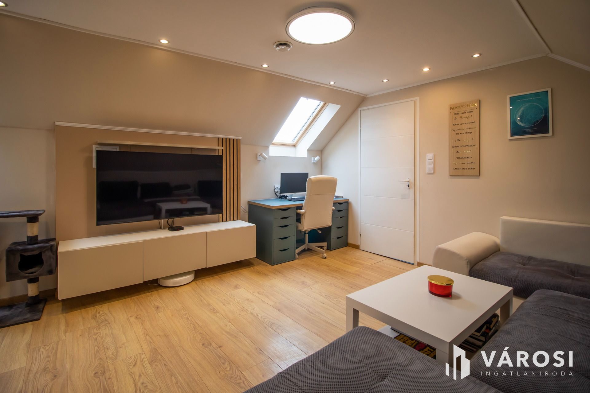 A lakáshoz tartozó, 246 négyzetméteres telekrészen kényelmesen elfér 3-4 autó és marad még elég hely kerti partiknak, vagy a családok kedvenceinek is.