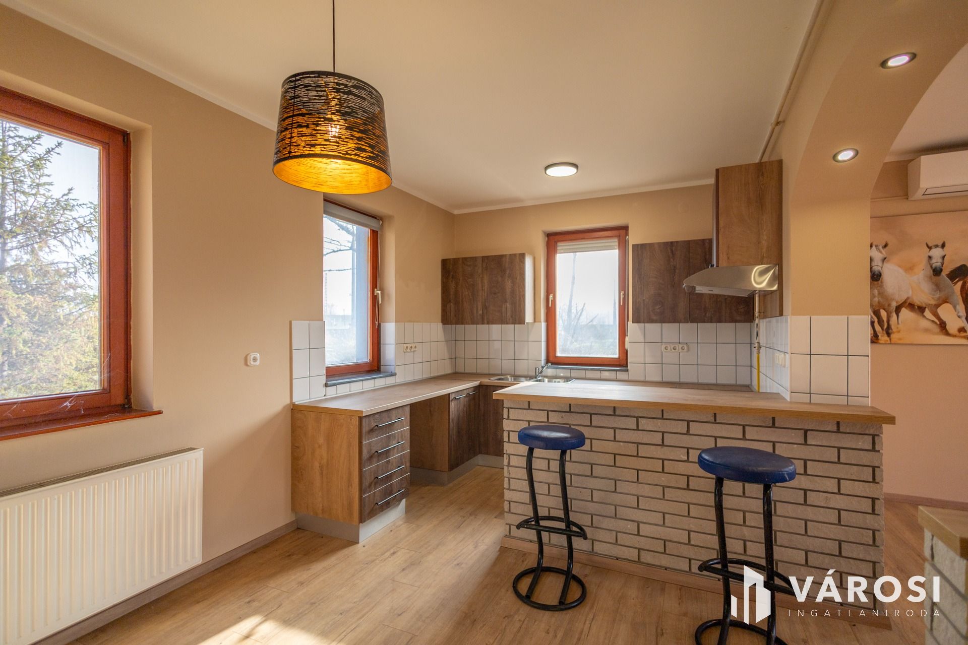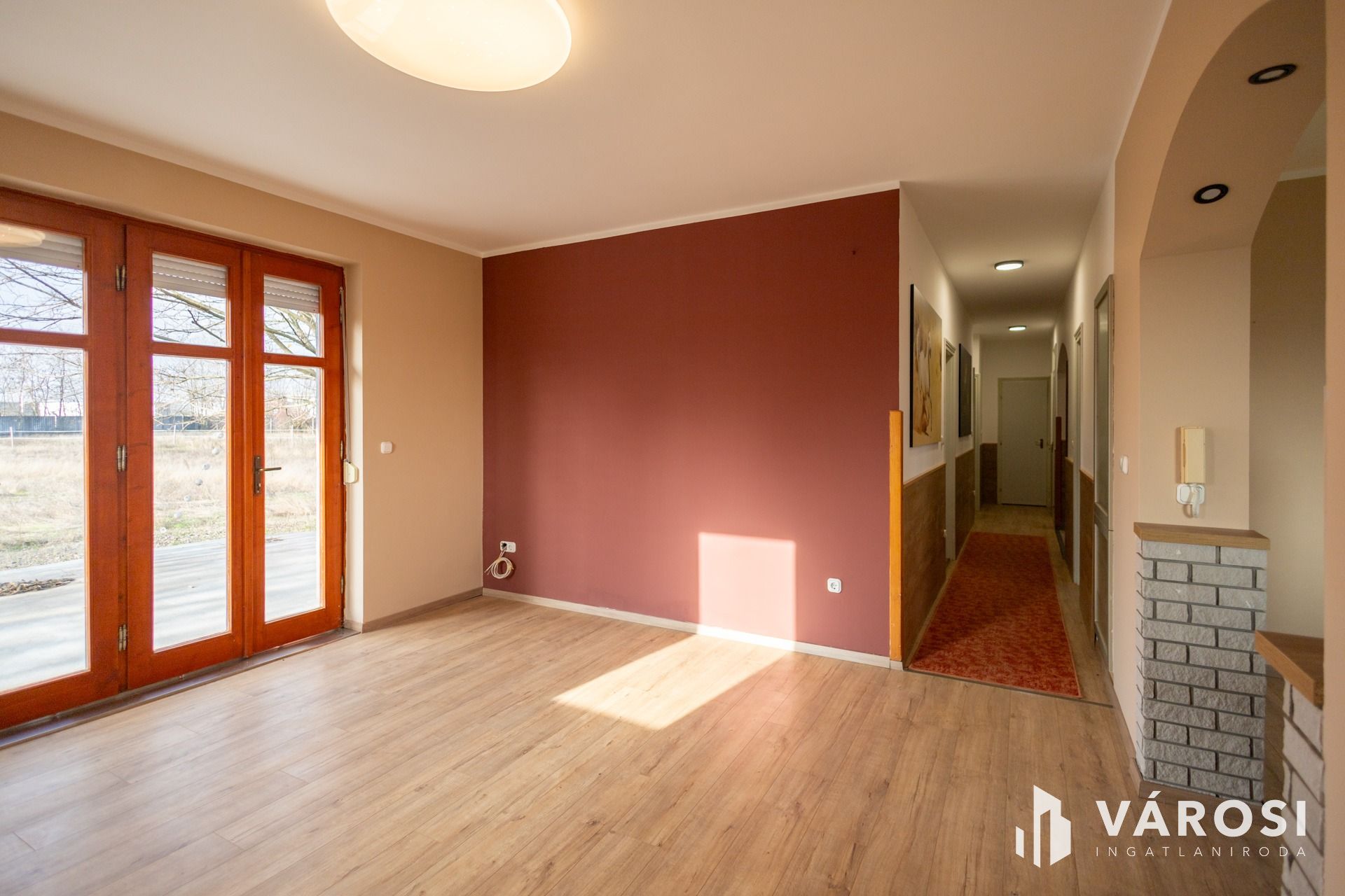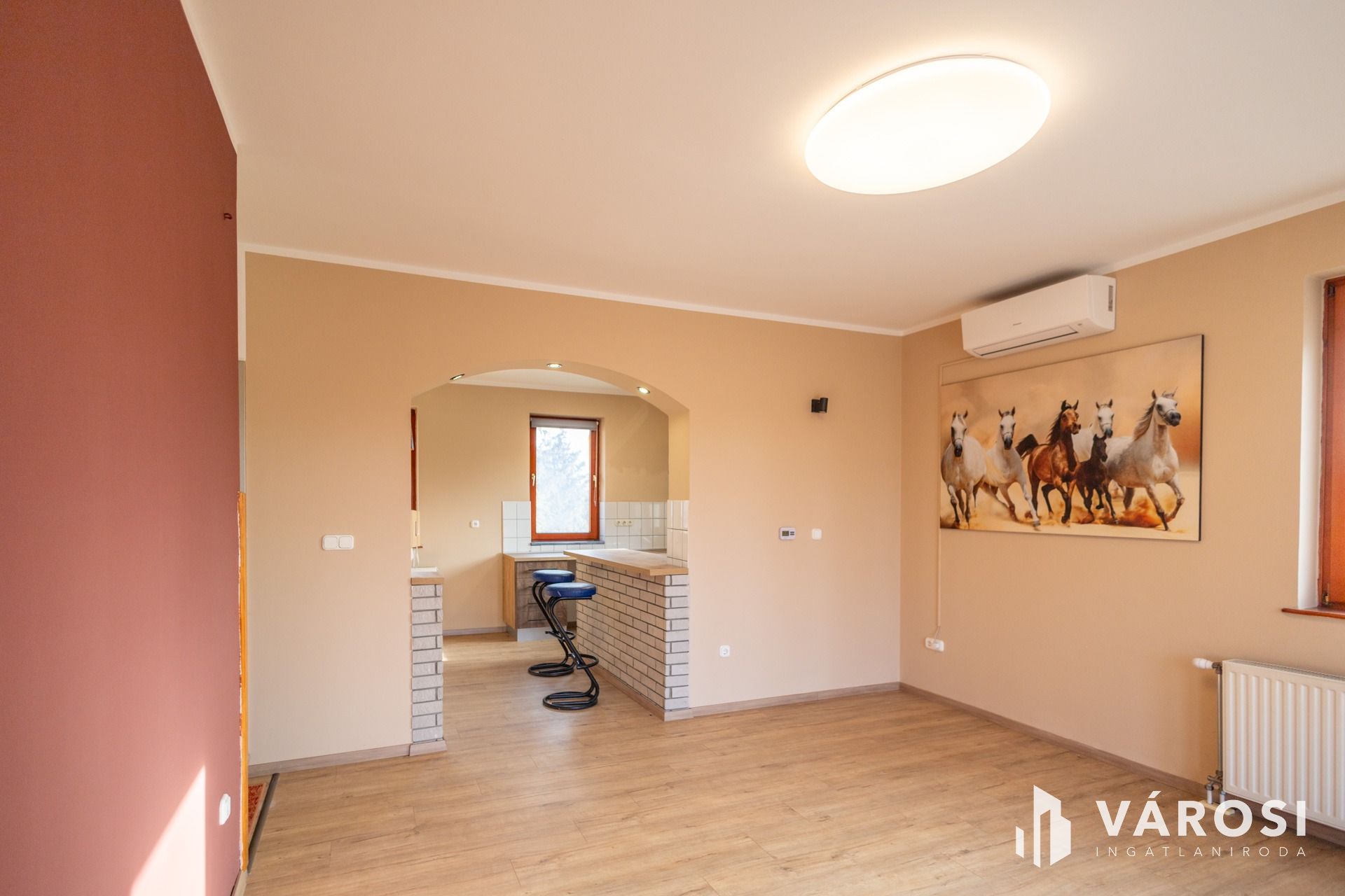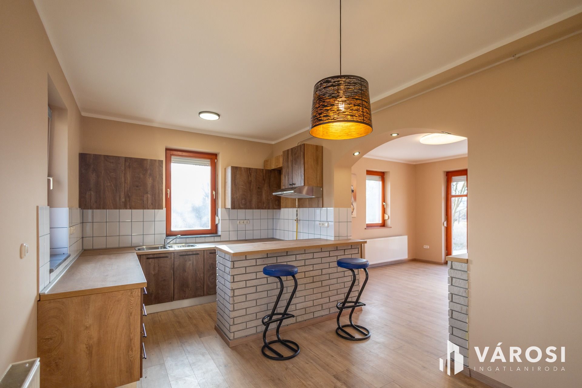 -Szobák és nappali laminált padlóval, egyéb helyiségek járólappal, mindenhol új padlóburkolat