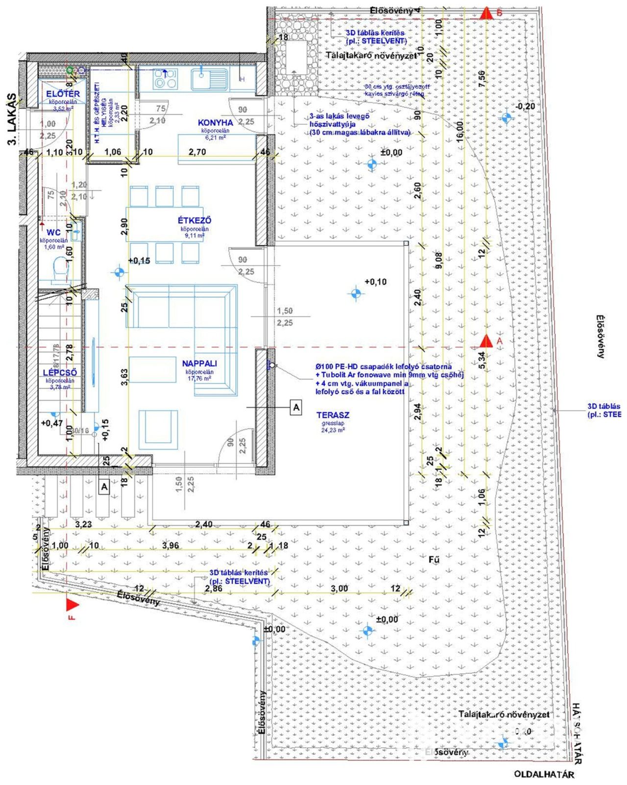 -Alapterület: 83,32 m² lakótér + 24,23 m² terasz + 120 m² saját kertrész
