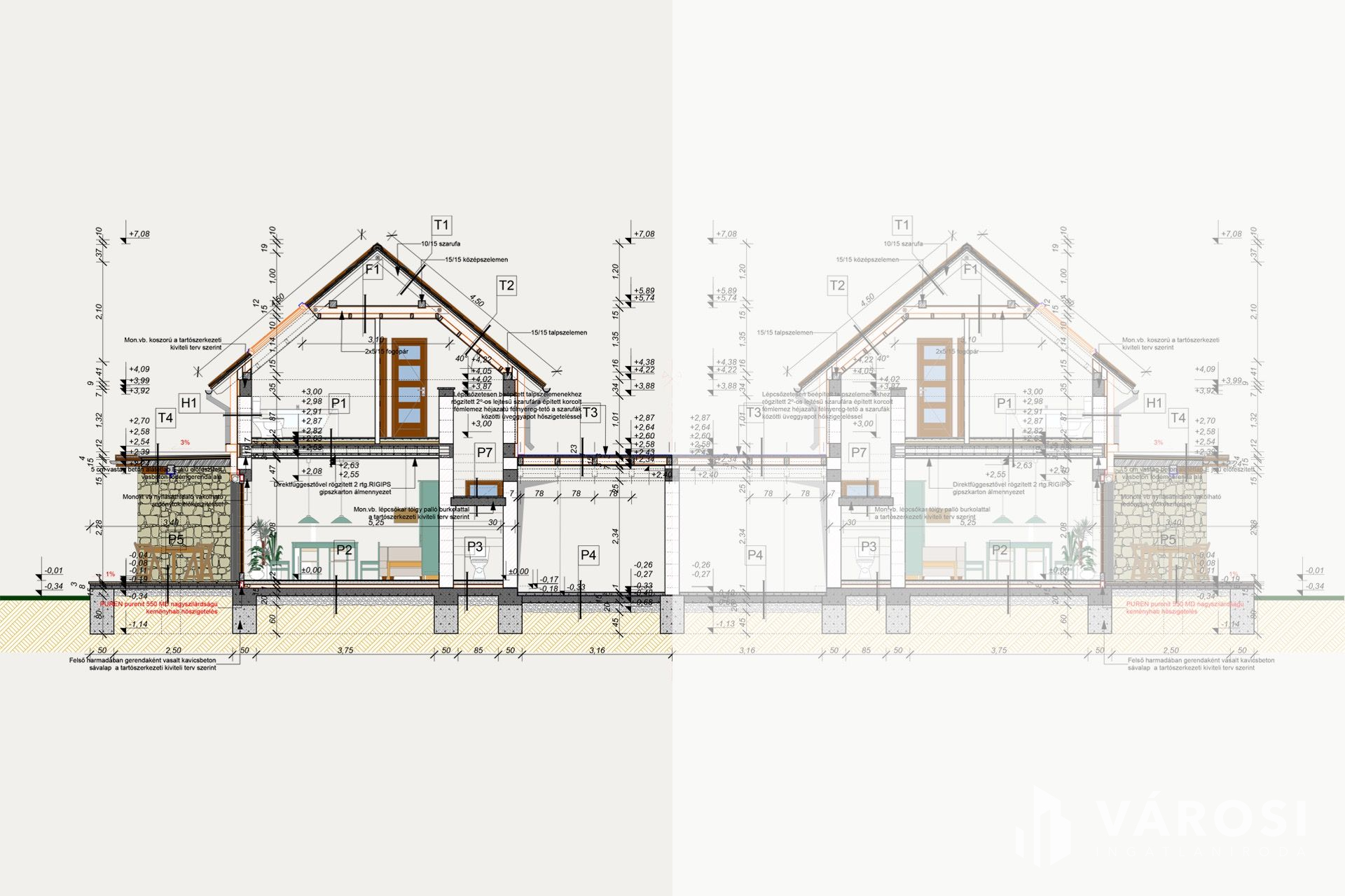 Aljzaton 10 cm-es lépésálló szigeteléssel, míg a tetőszerkezet 20 cm-es kőzetgyapot szigeteléssel.