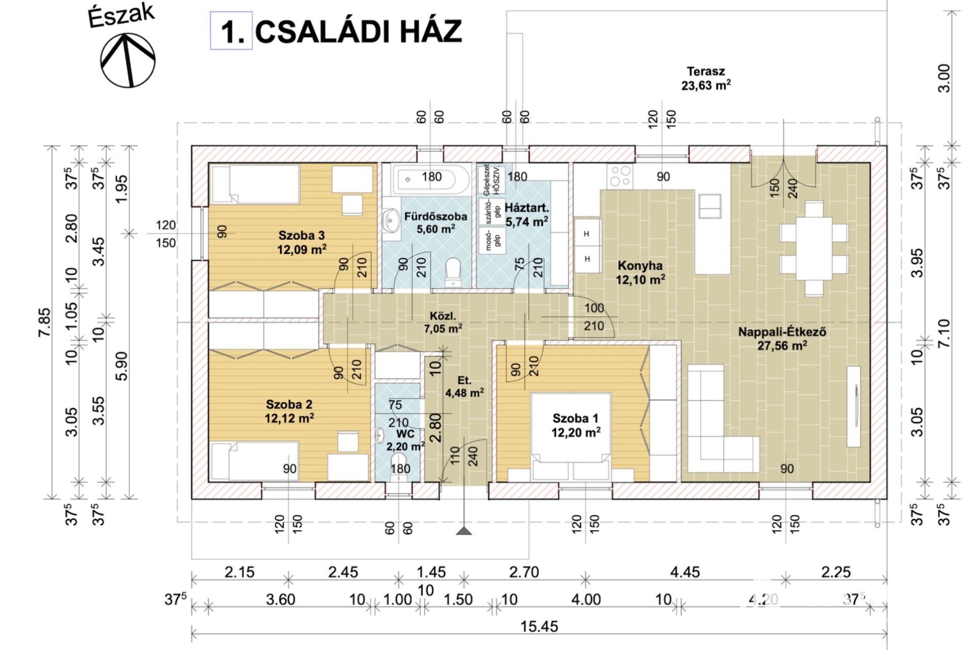 A ház 1 db nappalival, 3-4 db hálószobával, 1 db fürdőszobával, konyha étkezővel közlekedővel, terasszal rendelkezik. Az ingatlan elhelyezkedésre, kialakítása miatt, maximálisan kiemeli ezt az ingatlant az átlagos lakások sorából és egyedülálló választássá teszi azt. További előny. hogy ház hőszivattyús padló fűtéssel, klímás hűtéssel lesz felszerelve.