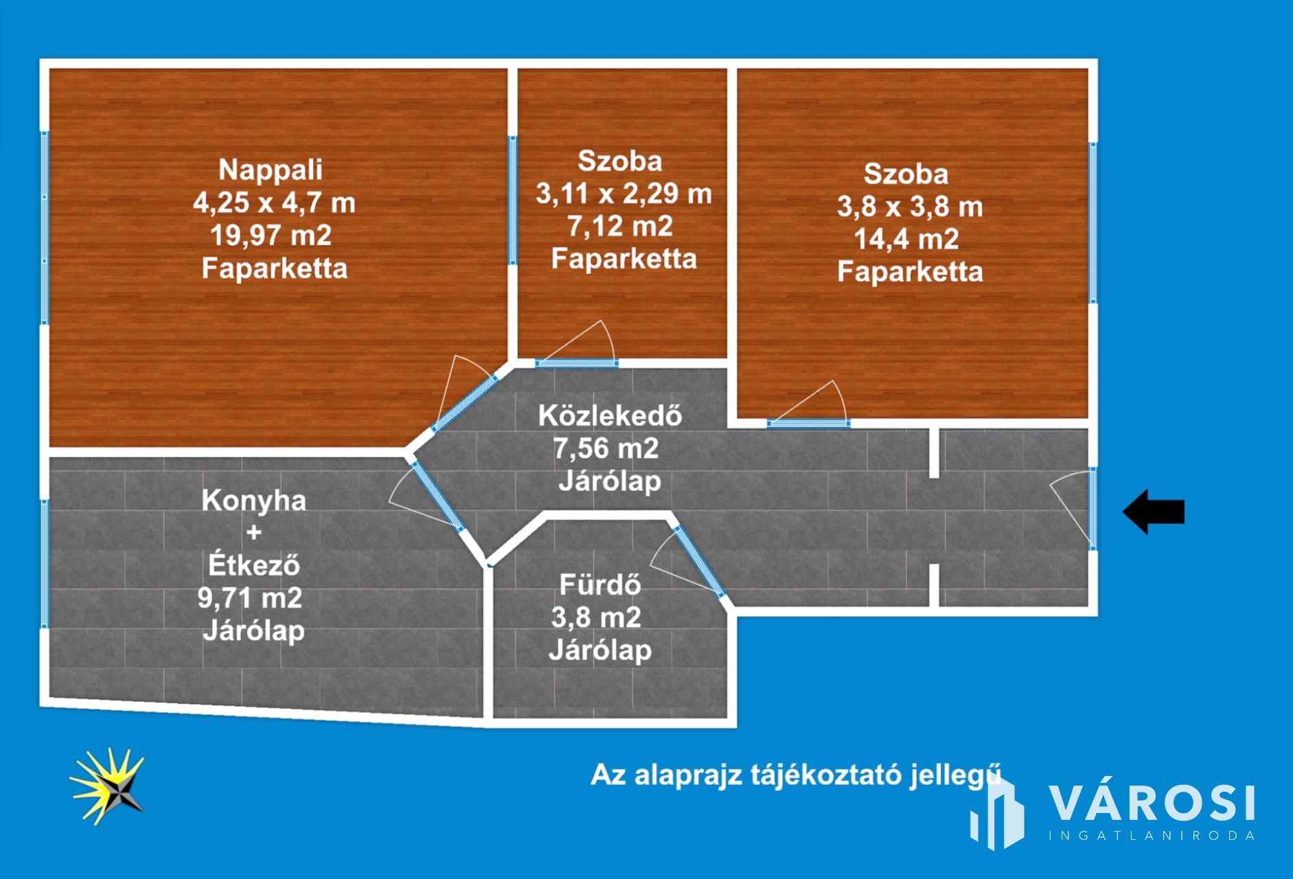 A lakás 1 db nappalival, 2 db hálószobával, 1 db fürdőszobával, konyha étkezővel közlekedővel rendelkezik. Az ingatlan elhelyezkedésre, kialakítása miatt, maximálisan kiemeli ezt az ingatlant az átlagos lakások sorából és egyedülálló választássá teszi azt. A társasháztól könnyen elérhető a belváros és a TIK is.
