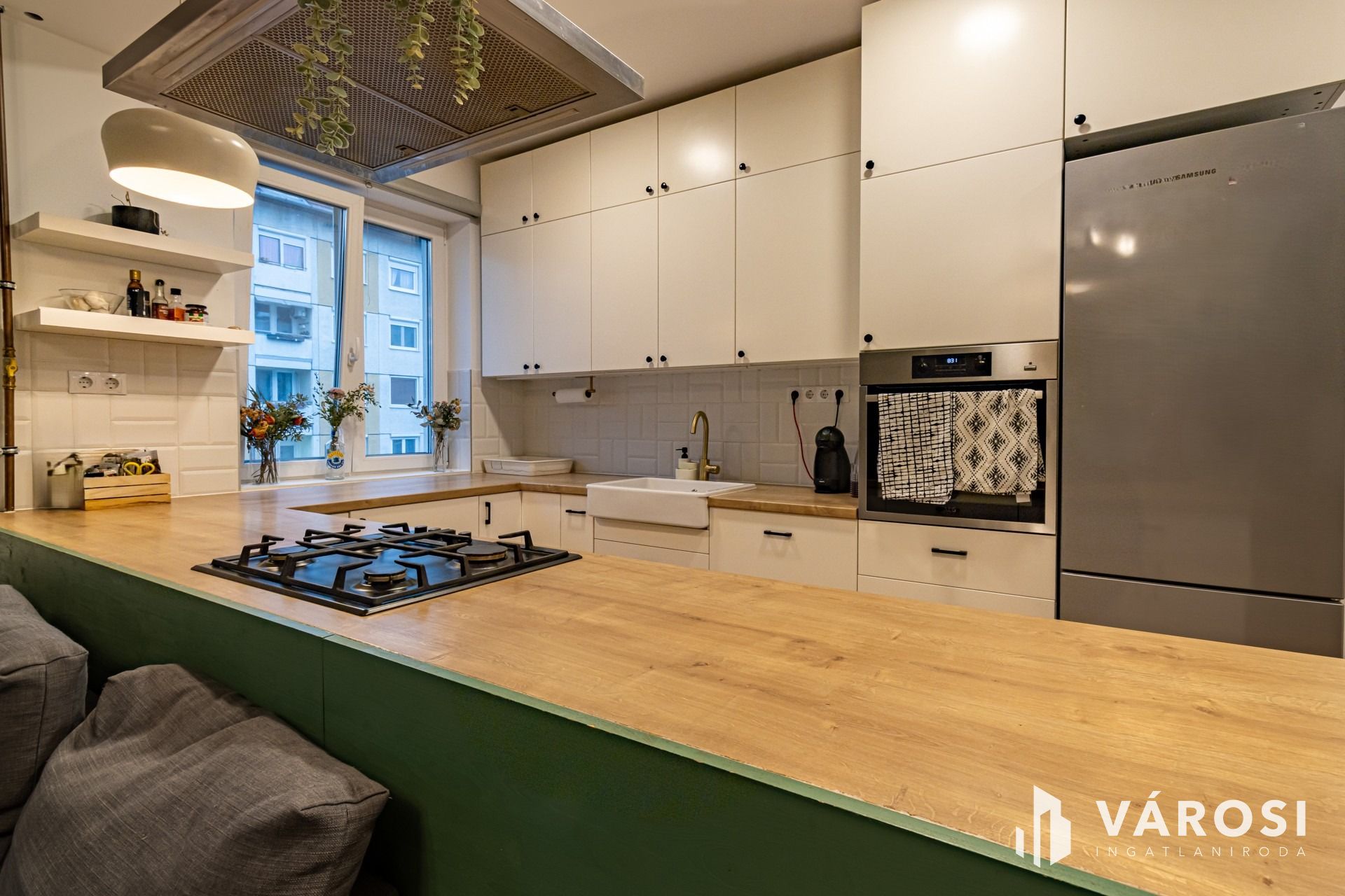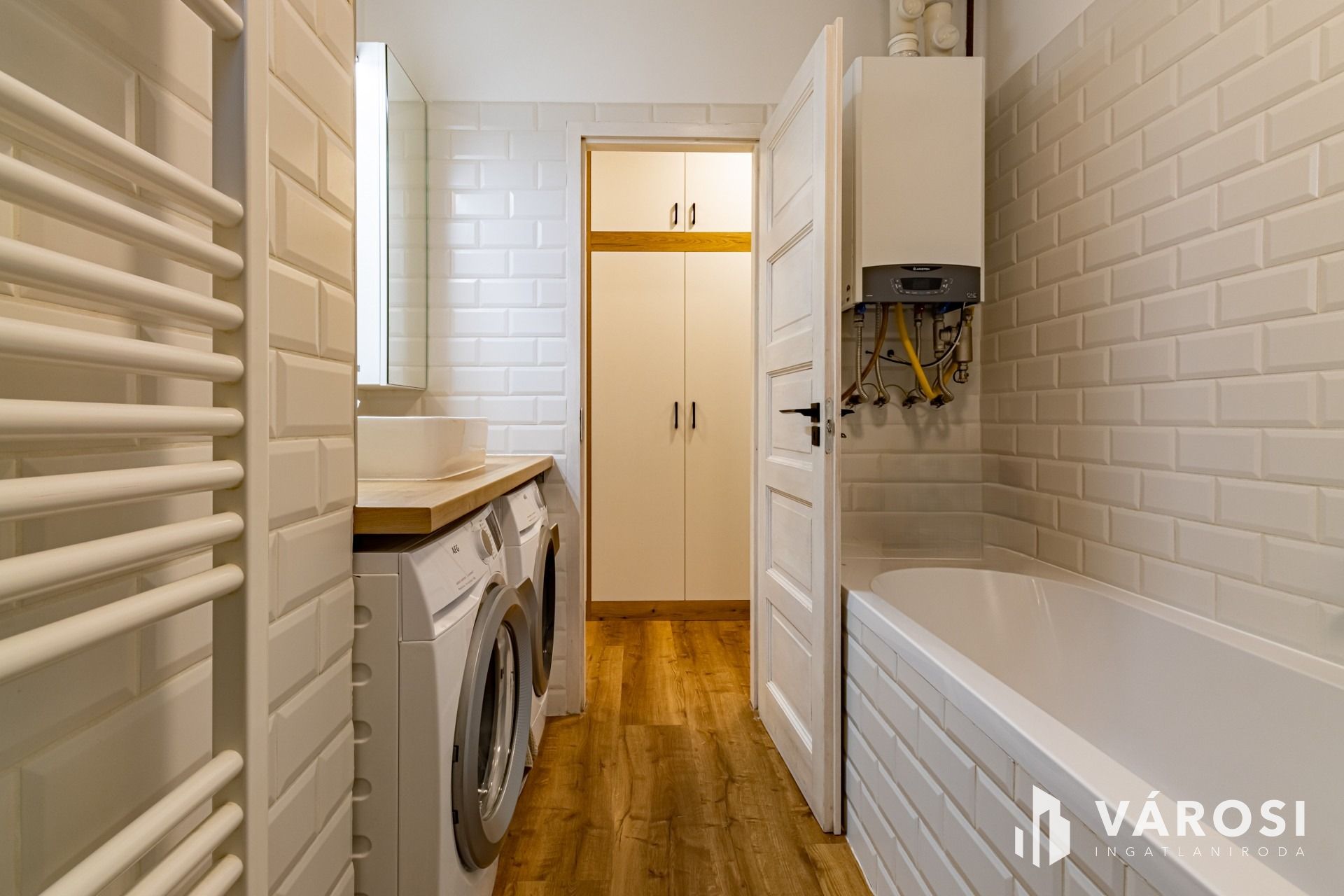Beépített gardróbszekrényekkel, légkondival, gépekkel, teljes berendezéssel kerül értékesítésre.