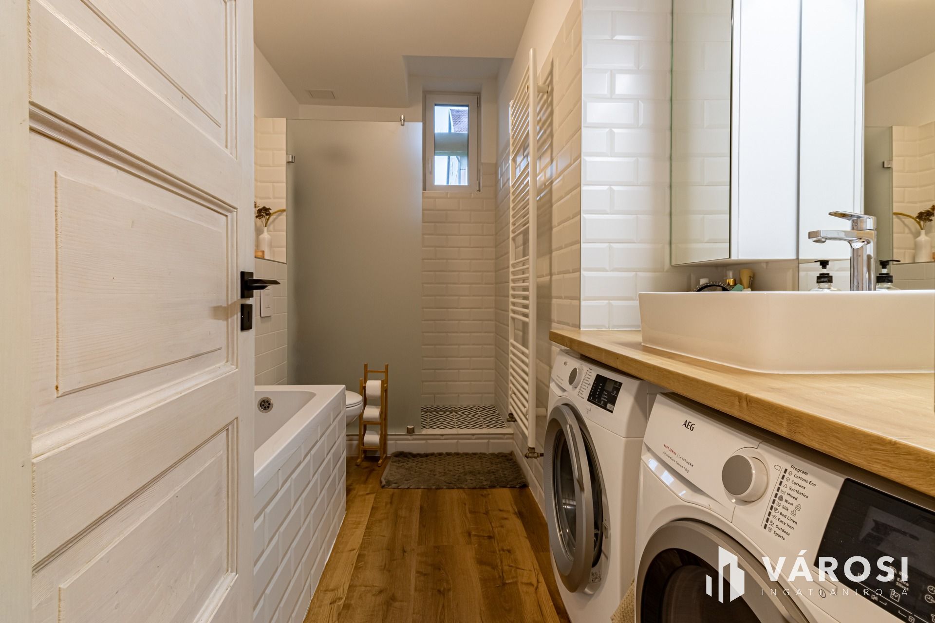 The property includes AEG and Samsung appliances such as a washing machine, dryer, dishwasher, refrigerator, and oven.