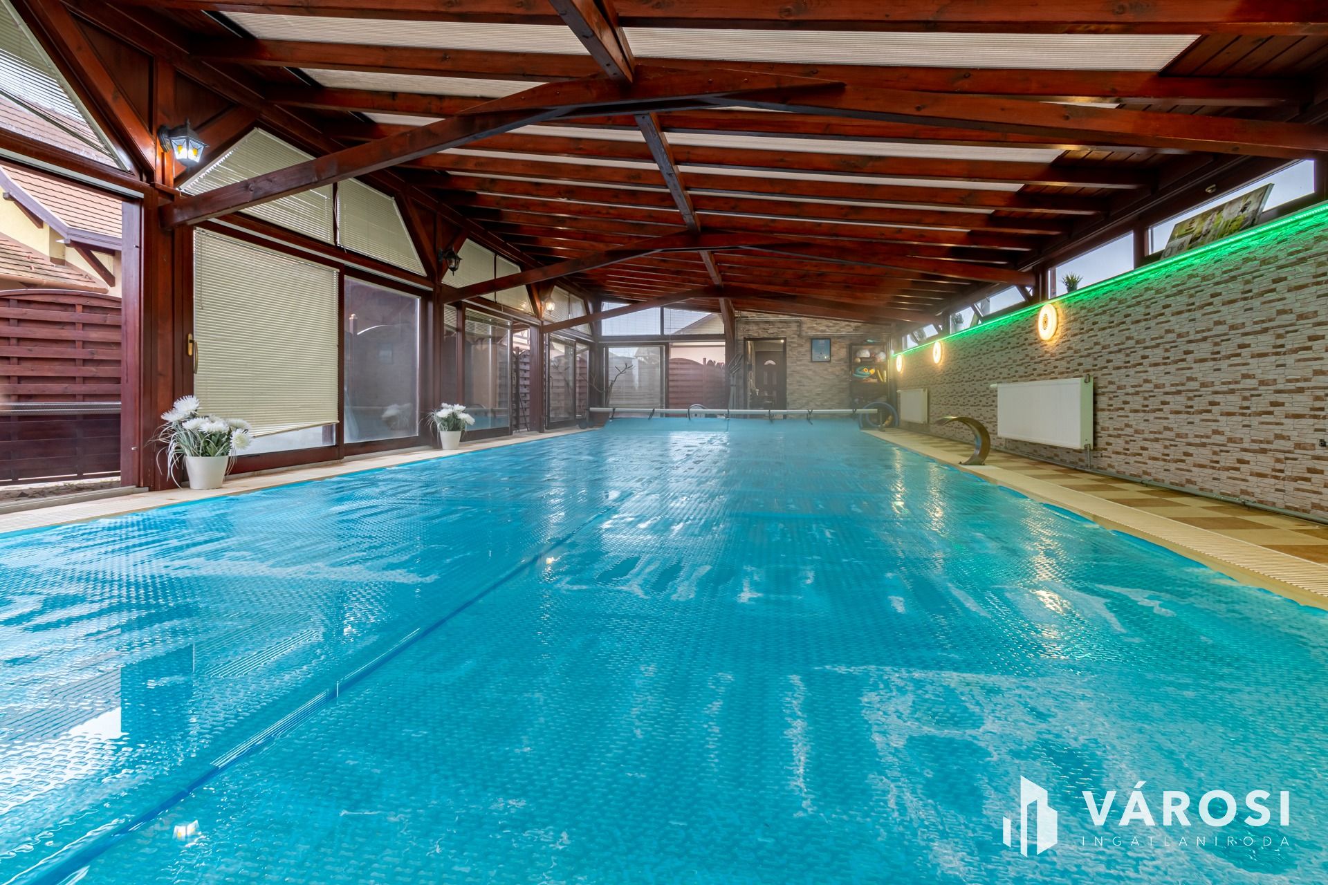 Kiadó a képeken látható családi ház hosszú távra, medence, jacuzzi, szauna és szolárium használattal. A wellness részleg közös használatú a szomszédban lakó tulajdonossal.